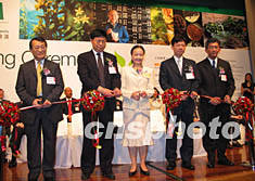 為推動香港發(fā)展成國際化中醫(yī)藥研究及貿(mào)易中心,貿(mào)發(fā)局首次辦“國際現(xiàn)代化中醫(yī)藥及健康產(chǎn)品展覽暨會議”。圖為貿(mào)發(fā)局署理行政總裁黎黃靄玲(中)于十四日為開幕式剪彩。作者:裘之越