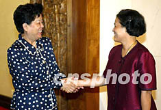 中新社北京八月十四日電(記者齊彬)中國(guó)國(guó)務(wù)委員陳至立今天在釣魚(yú)臺(tái)國(guó)賓館會(huì)見(jiàn)了泰國(guó)公主詩(shī)琳通。