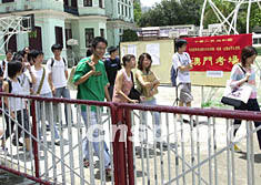 原定于六月進行的中國普通高等學校二零零三年招收華僑、港澳、臺灣省學生考試,因受“非典”影響改于本月十五日至十七日進行,圖為澳門考區(qū)的七百余名應屆高中畢業(yè)生在培正中學參加考試。中新社記者:李剛