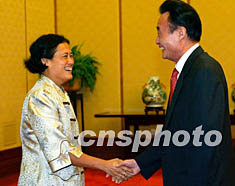 中國全國人大常委會(huì)委員長吳邦國十五日在人民大會(huì)堂會(huì)見了來訪的泰國公主詩琳通。
