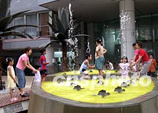 香港商場(chǎng)為顧客提供一個(gè)戶外活動(dòng)好地方。如今,為了吸引顧客,商場(chǎng)設(shè)施要?jiǎng)e樹(shù)一幟。十七日,顧客及游人在香港新都會(huì)廣場(chǎng)中央的一座別具特色的互動(dòng)噴池觀賞游玩。作者:譚達(dá)明