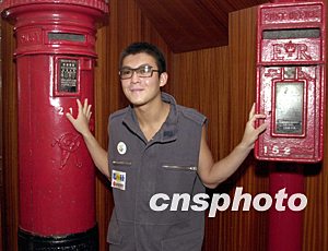 歌星陳冠希8月18日在香港出席新城電臺與香港郵政合辦《Edison聯(lián)fan集郵Teen》參觀郵政總局活動,對兩臺舊式郵筒頗具興趣。作者:鄧慶樂