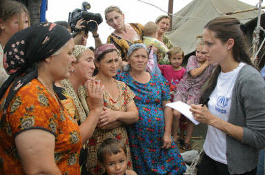 作為聯(lián)合國難民事務(wù)高級(jí)專員公署的“親善大使”,好萊塢影星安吉莉娜·朱莉22日探訪了俄羅斯北高加索地區(qū)靠近車臣邊境的貝拉難民營,受到車臣難民的熱情歡迎。朱莉自從2001年被聯(lián)合國難民署任命為“親善大使”以來,已經(jīng)實(shí)地訪問了世界多個(gè)國家的難民營。