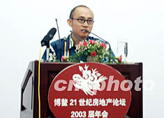 博鰲二十一世紀(jì)房地產(chǎn)論壇二00三屆年會(huì)二十三日在海南博鰲隆重開幕,SOHO中國(guó)董事長(zhǎng)潘石屹在論壇上演講。作者:莫成雄