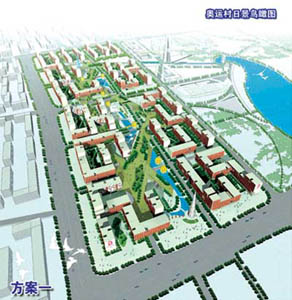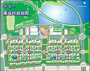 。牐犜谶@個方案中,奧運村布局按雙“喜”字分為四個組團,還設計了聯(lián)系奧運村中心區(qū)與北部森林公園之間的“景觀通廊”。