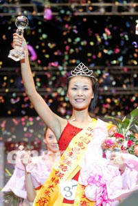 2003年中國南昌新絲路模特大賽二十三日晚在南昌市紅谷灘行政廣場舉行,六十名男女選手在T臺上展示青春靚麗風采。來自當?shù)氐氖艢q選手肖嬌獲得冠軍。中新社記者:毛建軍