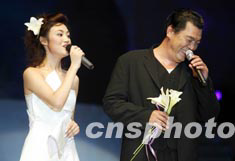 香港著名藝人“大傻”成奎安二十三日晚在2003年中國南昌新絲路模特大賽上擔當主持人,與當?shù)氐呐鞒秩送_亮相時似乎還有些“靦腆”。許多被內地觀眾熟悉的香港藝人近年來頻頻北上,開拓內地市場之勢強勁。中新社記者:毛建軍