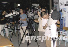 由廣東省天文學會主辦的“火星大沖”天文觀測活動,二十三日晚在廣州市113中學舉行。有史以來火星最接近地球的這一“火星大沖”天文現(xiàn)象,吸引了眾多市民前往觀測。作者:羅仰明