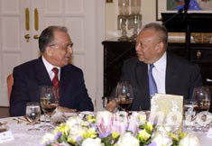 香港行政長官董建華(右)八月二十五日在禮賓府設宴招待羅馬尼亞總統(tǒng)揚伊利埃斯庫。中新社 圖