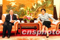 八月二十六日,全國(guó)政協(xié)副主席、中共中央統(tǒng)戰(zhàn)部部長(zhǎng)劉延?xùn)|(右)在北京會(huì)見了以廖長(zhǎng)城為團(tuán)長(zhǎng)的香港律師界訪京團(tuán)。中新社記者:盛佳鵬