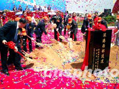 圖為中共中央政治局委員、國務(wù)院副總理曾培炎宣布深港西部通道動工。