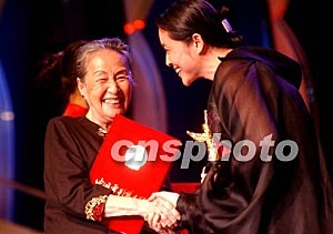 中國電影第九屆華表獎三十日晚在北京北展劇場揭曉,在《世界上最疼我的那個人去了》中飾演主角的黃素影與在《美麗的大腳》中飾演主角的倪萍榮獲優(yōu)秀女演員獎。中新社記者:武仲林