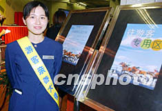 香港沙田馬場(chǎng)在八月三十一日新賽季開(kāi)鑼日,首次開(kāi)設(shè)游客專(zhuān)用區(qū),讓內(nèi)地自由行游客參與投注獲勁賞。圖為沙田馬場(chǎng)的游客親善大使。中新社記者:潘索菲