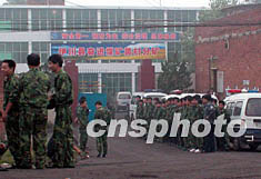 九月三日,河南洛陽市伊川縣奮進煤礦大門外戒備森嚴。該煤礦黃村分井在九月二日突發(fā)透水事故,16名工人被困井下。事故發(fā)生后,當?shù)卣S即展開救援,但因困難較大,搶救工作進展緩慢。作者:慎重