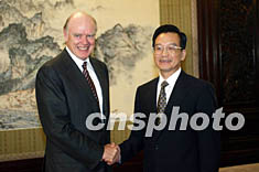 溫家寶今天下午在中南海紫光閣會(huì)見了美國財(cái)政部長斯諾。雙方就中美關(guān)系、世界經(jīng)濟(jì)形勢(shì)以及人民幣匯率等問題友好、坦誠地交換了意見,增進(jìn)了理解。