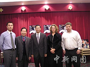 中國(guó)京劇《白蛇傳》首次參加澳大利亞多元文化藝術(shù)節(jié),將于9月25日至28日在悉尼連演4天,并于29日在堪培拉演出1天。中國(guó)京劇院將派出46位藝術(shù)家來(lái)澳演出。圖為中國(guó)駐悉尼總領(lǐng)事廖志洪(中),劉大衛(wèi)(左1),著名僑領(lǐng)周光明(左2),藝術(shù)節(jié)董事會(huì)主席瑪賽羅斯(女)和藝術(shù)總監(jiān)曼尼迪斯在新聞發(fā)布會(huì)上合影。中新社記者 劉雨生 攝