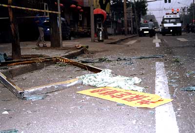 據(jù)北京娛樂(lè)信報(bào)報(bào)道,肉餅店臨街的一扇門(mén)和三個(gè)窗戶全部被炸碎,馬路中間全是炸飛的碎玻璃,并有門(mén)窗框被炸飛到馬路對(duì)面。酒吧和肉餅店的所有窗戶都被炸壞。