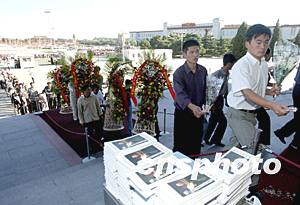毛澤東的父老鄉(xiāng)親一如既往地將心中淳樸而誠(chéng)摯的鄉(xiāng)情和對(duì)主席的深深懷念以各種形式表現(xiàn)出來(lái)。今日上午,當(dāng)?shù)孛癖娂娂妬?lái)到毛主席銅像前,或深深掬一個(gè)躬,或獻(xiàn)上一束鮮花,將淳樸而誠(chéng)摯的鄉(xiāng)情和對(duì)主席的深深懷念輕輕的奉上,將無(wú)限的敬仰和深切的懷念向主席輕聲訴說(shuō)。