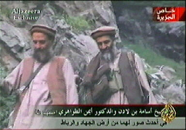 在9·11恐怖襲擊兩周年紀(jì)念日到來(lái)之際,卡塔尓半島電視臺(tái)9月10日晚播放了“基地”組織的最新錄像和錄音帶!盎亍苯M織一號(hào)人物本·拉登和二號(hào)人物扎瓦赫里同時(shí)出現(xiàn)在錄像帶中。