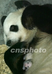 北京動物園8月24日出生的一只大熊貓幼崽,在初次做母親的“妞妞”十七天精心護養(yǎng)下度過最危險階段,如今小家伙已經長出大熊貓?zhí)赜械暮谏珬l紋并不停地吱吱叫喊企圖脫離母親的懷抱。中新社記者:任晨鳴
