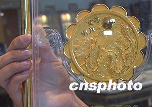 中秋之際,杭州一老字號(hào)金銀首飾店用十五克包金做了一個(gè)“金月餅”,為如火如荼的月餅大戰(zhàn)增添一抹亮色。作者:張茵