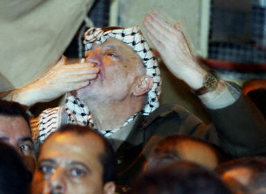 就在以色列做出上述決定的同時(shí),阿拉法特依然受到數(shù)千支持者的擁戴,當(dāng)他在周三走出辦公總部時(shí)無(wú)數(shù)的支持者在向他歡呼。身旁有保鏢保護(hù)的阿拉法特向支持者拋去飛吻,并做出勝利的姿式。在加沙城市中心,5000多人走上街頭進(jìn)行游行表達(dá)對(duì)阿拉法特的支持。(春風(fēng))