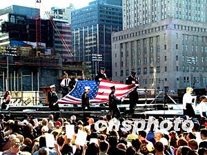 紐約十一日上午在世貿(mào)廢墟舉行“九一一”兩周年紀念儀式。中新社記者:趙海燕