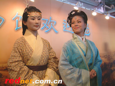 今日亮相于“旅博會(huì)”的“辛追后裔”柳眉杏眼、翹鼻薄唇,頗具幾分古典美,身著相同的服飾與辛追塑像比肩而立,立即吸引了無(wú)數(shù)目光和閃光燈。身處眾人驚奇和猜疑的審視之下,女孩始終保持著緘默。