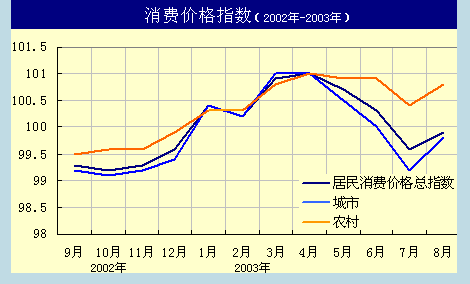 中新網(wǎng)9月15日電 國(guó)家統(tǒng)計(jì)局今日發(fā)布的最新數(shù)據(jù)顯示,今年8月份,中國(guó)居民消費(fèi)價(jià)格總水平比去年同月上漲0.9%,其中城市上漲0.6%,農(nóng)村上漲1.4%。與上月比,全國(guó)居民消費(fèi)價(jià)格總水平上漲0.7%。1-8月累計(jì)平均,全國(guó)居民消費(fèi)價(jià)格總水平比去年同期上漲0.6%。這一數(shù)據(jù)顯示中國(guó)已經(jīng)逐步走出微幅通貨緊縮的局面。