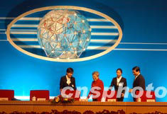 第六屆中國北京國際科技產(chǎn)業(yè)博覽會九月十五日在北京閉幕,國務(wù)院副總理吳儀(左二)、中共北京市委書記劉淇(右)等參加閉幕會。中新社記者·:張宇