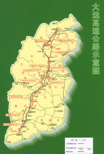大運(yùn)高速公路北起古城大同,南至黃河三角洲新興城市運(yùn)城,縱貫山西南北,穿越山西8個(gè)市地31個(gè)縣市區(qū)132個(gè)鄉(xiāng)鎮(zhèn)495個(gè)行政村,全長666公里,雙向六車道,總投資222億元,是國家二連浩特至河口國道主干道線和臨汾至三亞重點(diǎn)公路的重要組成部分,是山西“三縱三橫”公路最重要的中軸快速通道。
