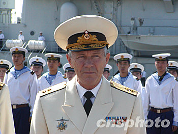 9月20日,俄羅斯海軍“潘捷列耶夫海軍上將”號(hào)大型反潛艦,在太平洋艦隊(duì)副司令科涅夫·亞歷山大·瓦西里耶維奇中將率領(lǐng)下,抵達(dá)青島港,開(kāi)始對(duì)青島進(jìn)行友好訪問(wèn)。圖為俄海軍太平洋艦隊(duì)副司令瓦西里耶維奇中將在歡迎儀式上。鄒山 攝
