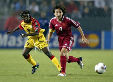 此后,中國隊繼續(xù)試圖擴大比分,不過因為配合上缺乏默契,對方門將發(fā)揮神勇,未能擴大比分。因為中國女足年齡偏大,漸漸在場上暴露出體能不足的缺點,而體力充沛的加納隊借機向中國隊大舉進攻,屢屢造成威脅。