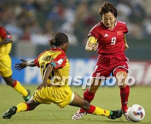 國際足聯(lián)女足世界杯官方網(wǎng)站指出,在比賽開始后,中國隊就表現(xiàn)得比對手精明。第6分鐘,孫雯就強迫蘇拉曼娜做出了一次驚險撲救。此后中國隊繼續(xù)向?qū)κ质〾,并“很聰明的控制了比賽?jié)奏”,并由孫雯打入一個關(guān)鍵球。