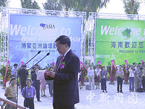 由中遠(yuǎn)集團(tuán)投資建設(shè)的博鰲亞洲論壇永久會(huì)址——博鰲亞洲論壇國際會(huì)議中心二十二日揭幕,博鰲亞洲論壇秘書長龍永圖在揭幕典禮上致詞。中新社記者 關(guān)向東 攝