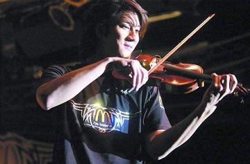王力宏在宣傳活動(dòng)上用小提琴演奏了一段《愛(ài)的就是你》。龍成關(guān) 攝