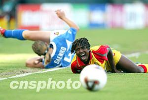 美國當(dāng)?shù)貢r(shí)間9月25日16點(diǎn)15分,2003年第四屆女足世界杯D組加納隊(duì)對俄羅斯隊(duì)的比賽在美國洛杉磯南部卡森的The Home Depot Center體育場舉行。上半場俄羅斯隊(duì)1比0領(lǐng)先下半場俄羅斯隊(duì)擴(kuò)大戰(zhàn)果,最終以3比0獲勝。作者:劉占坤