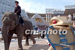 北京版《阿依達》不僅有來自國外的藝術(shù)家,更有與之相呼應(yīng)的中國藝術(shù)家。他們包括中國一流的中央歌劇院交響樂團、北京交響樂團組成的150人的高水準交響樂團與歌劇演員、舞蹈演員、體操演員等組成的達4500人的規(guī)?涨暗难莩鰣F隊。各種藝術(shù)元素如雜技、馬戲等表演手段融入其中,雄獅猛獸、老虎大象,作為動物演員登臺助陣,加上歐洲著名服裝道具設(shè)計師為此劇專門設(shè)計的萬余套服裝道具,把觀眾眼球都集中在了舞臺上。