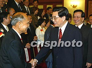 中新社北京九月二十七日電(記者邢利宇)中國(guó)國(guó)家主席胡錦濤今天下午在人民大會(huì)堂會(huì)見了以霍英東為團(tuán)長(zhǎng)的香港工商界知名人士訪京團(tuán)。