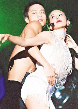 除了小齊外,另一位Karen的緋聞男友周星馳,雖然人未到,但送上一個巨型花籃,演唱會上還播出了Karen的電影,大部分都是跟“星爺”合作的影片。
