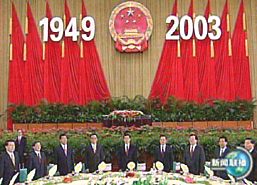 溫家寶總理在招待會上講話。他說,今年是中國人民在中共十六大精神指引下闊步前進的一年,是經(jīng)受嚴峻考驗并取得重大勝利的一年。