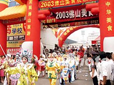 九月三十日,為期八天的“二OO三佛山美食歡樂節(jié)”揭幕,集中佛山烹飪師傅巧手制作的美食和特色食品,同時(shí)也引入內(nèi)地及世界各地的風(fēng)味美食。中新社記者:辛述之