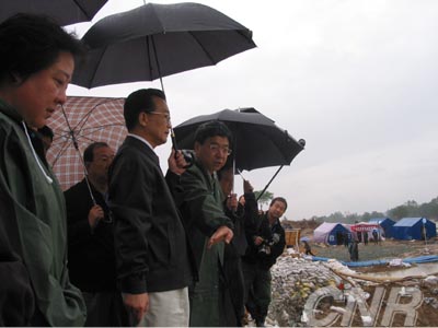 離開臨時小學,溫總理一行又看望了許多住在帳篷里的農民群眾。下午4點50分,溫總理一行又冒雨登上飛機,飛往安徽災區(qū)。(來源:中廣網 作者:記者崔正來、雷愷)