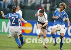 美國當(dāng)?shù)貢r間10月2日,2003女足世界杯德國隊與俄羅斯隊爭奪四強(qiáng)席位。德國隊發(fā)揮了體能好速度快的優(yōu)勢,以7比1大勝俄羅斯隊,殺入四強(qiáng)。作者:劉占坤