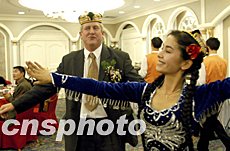 “十一”黃金周期間,外國游客在新疆烏魯木齊與維吾爾族姑娘載歌載舞,感受中國的少數(shù)民族風(fēng)情。中新社記者:張宇