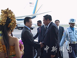 溫家寶總理抵達(dá)印尼巴厘島 印尼高官到機場迎接