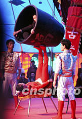 “十一”長(zhǎng)假期間中國(guó)雜技之鄉(xiāng)吳橋迎來(lái)一年中旅游黃金時(shí)節(jié)。在匯聚各路雜技高手的“雜技大世界”內(nèi),一位纖弱女子足蹬二百公斤的重物旋轉(zhuǎn)表演,令觀眾驚嘆不已。據(jù)悉,當(dāng)?shù)厝种回?cái)富來(lái)自雜技旅游收入。中新社記者:王麗南