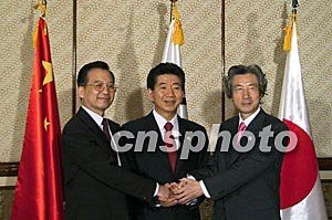 溫家寶表示,中日韓三國合作基礎(chǔ)良好,發(fā)展?jié)摿薮。去年三國?jīng)貿(mào)合作保持強勁勢頭,信息產(chǎn)業(yè)、環(huán)保、人力資源和文化等領(lǐng)域的合作發(fā)展很快。三方還就防治非典開展了良好的合作,開辟了公共衛(wèi)生合作新領(lǐng)域。