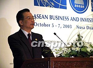 首屆東盟商業(yè)與投資峰會(huì)十月七日在印尼巴厘島舉行,中國國務(wù)院總理溫家寶出席會(huì)議并發(fā)表題為《中國的發(fā)展和亞洲的振興》的演講,來自中國、東盟以及世界其他地區(qū)的三百多名企業(yè)家聽取了演講。中新社記者:齊彬