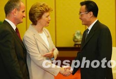 全國人大常委會委員長吳邦國十日在北京會見愛爾蘭總統(tǒng)瑪麗·麥卡利斯。中新社記者:滿會喬
